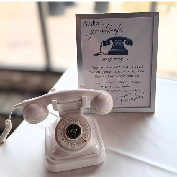 An Audio Guest Book is a modern, nostalgic alternative to a traditional paper sign-in book. Instead of writing a note, guests pick up a vintage-style telephone and leave a recorded message, story, or well-wish after the beep.