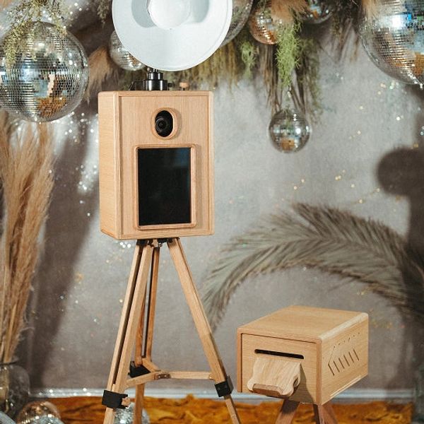 Experience a fusion of mid-century elegance and modern technology with our handcrafted Vintage Wood Booth. This stunning activation engages your guests the entire night, serving as both a beautiful piece of décor and a source of elevated entertainment. Known for its rich wood finish and professional studio-quality lighting, this booth is the perfect addition to a wedding that values timeless style. Guests will fall in love with the nostalgic memories it creates and the exquisite, luxury prints they can take home as a cherished keepsake.